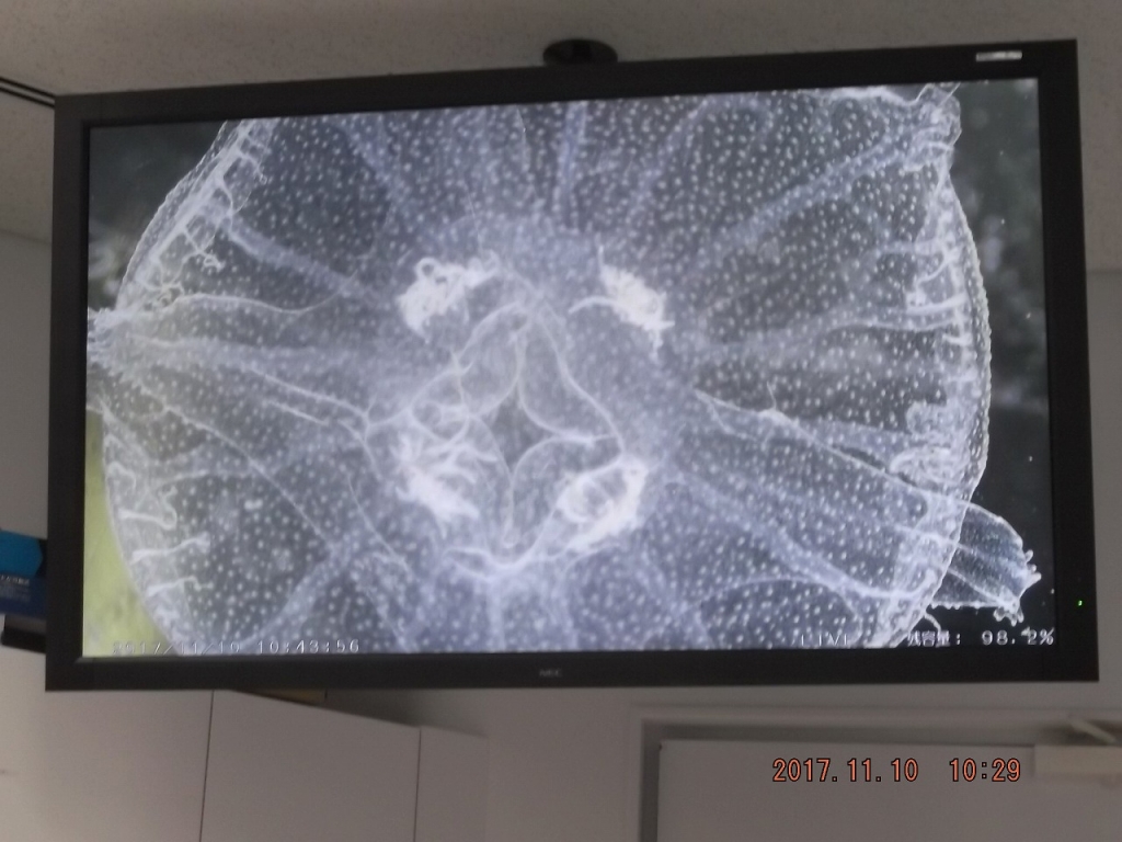 普段は入れない場所で、水クラゲに触ったり、生まれたばかりのクラゲの赤ちゃんを電子顕微鏡で観察したりと、子供たちは普段できないない経験をしてきました。